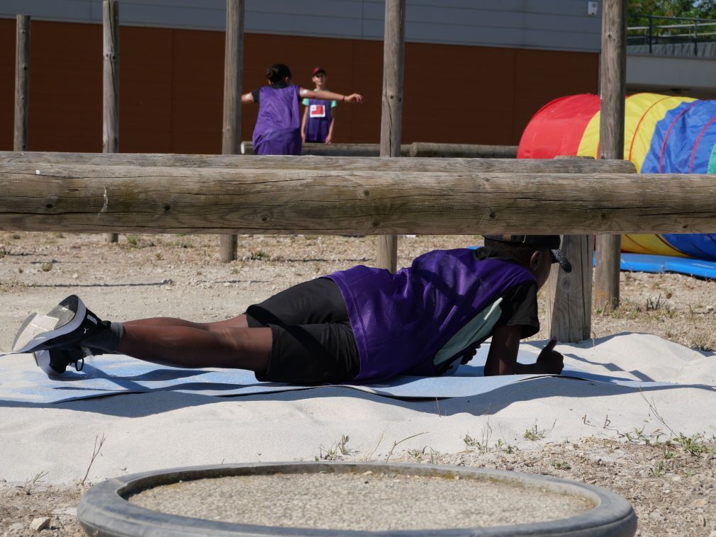 ● Le parcours challengers : parcours où il faut sauter, ramper et rester en équilibre sur une poutre