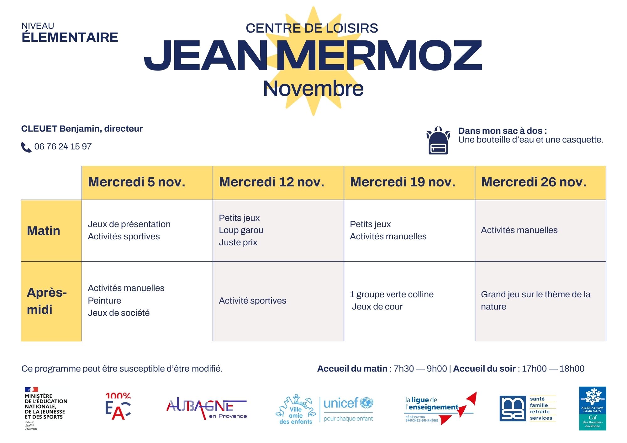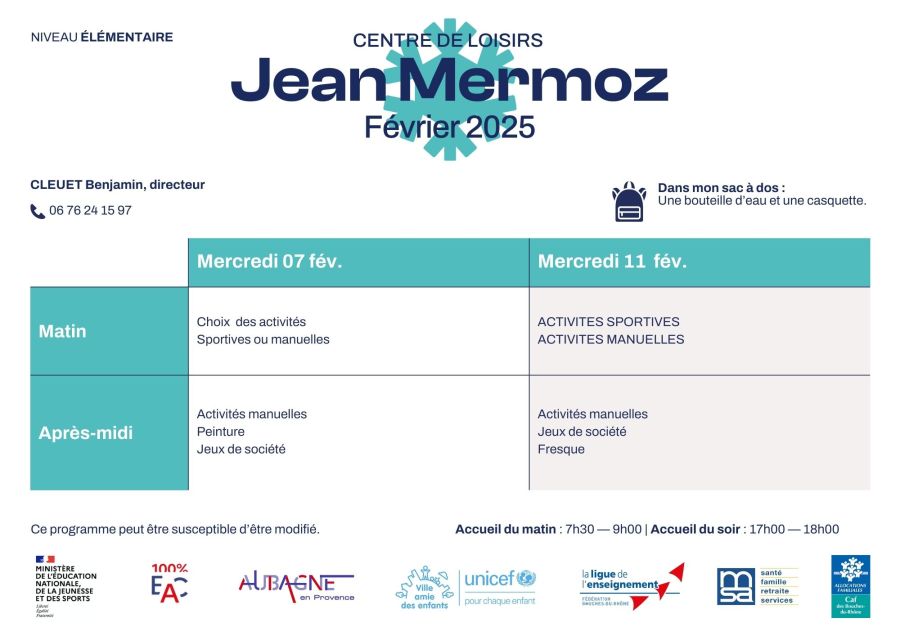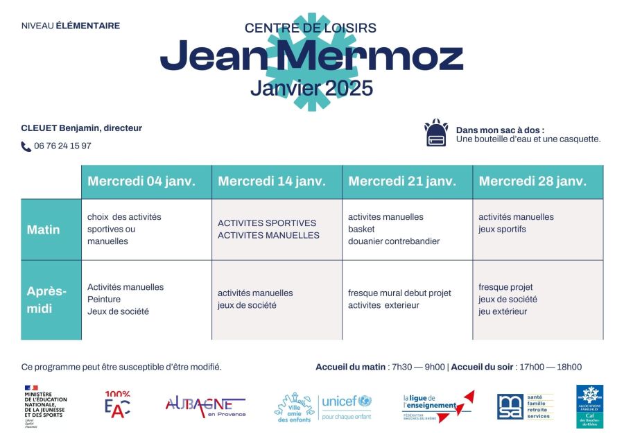 Découvrez le programmes des activités niveau élémentaire pour les mercredis.