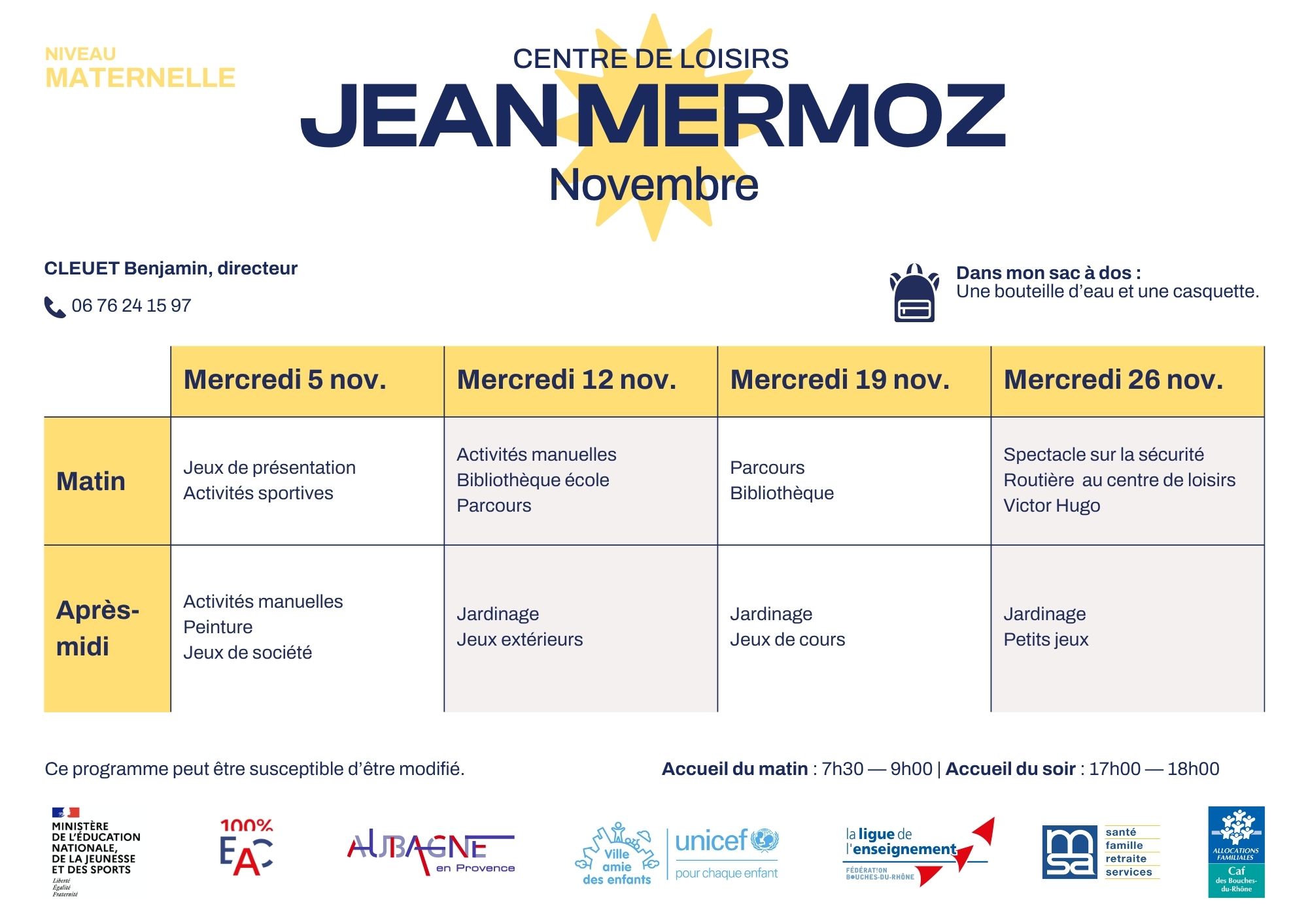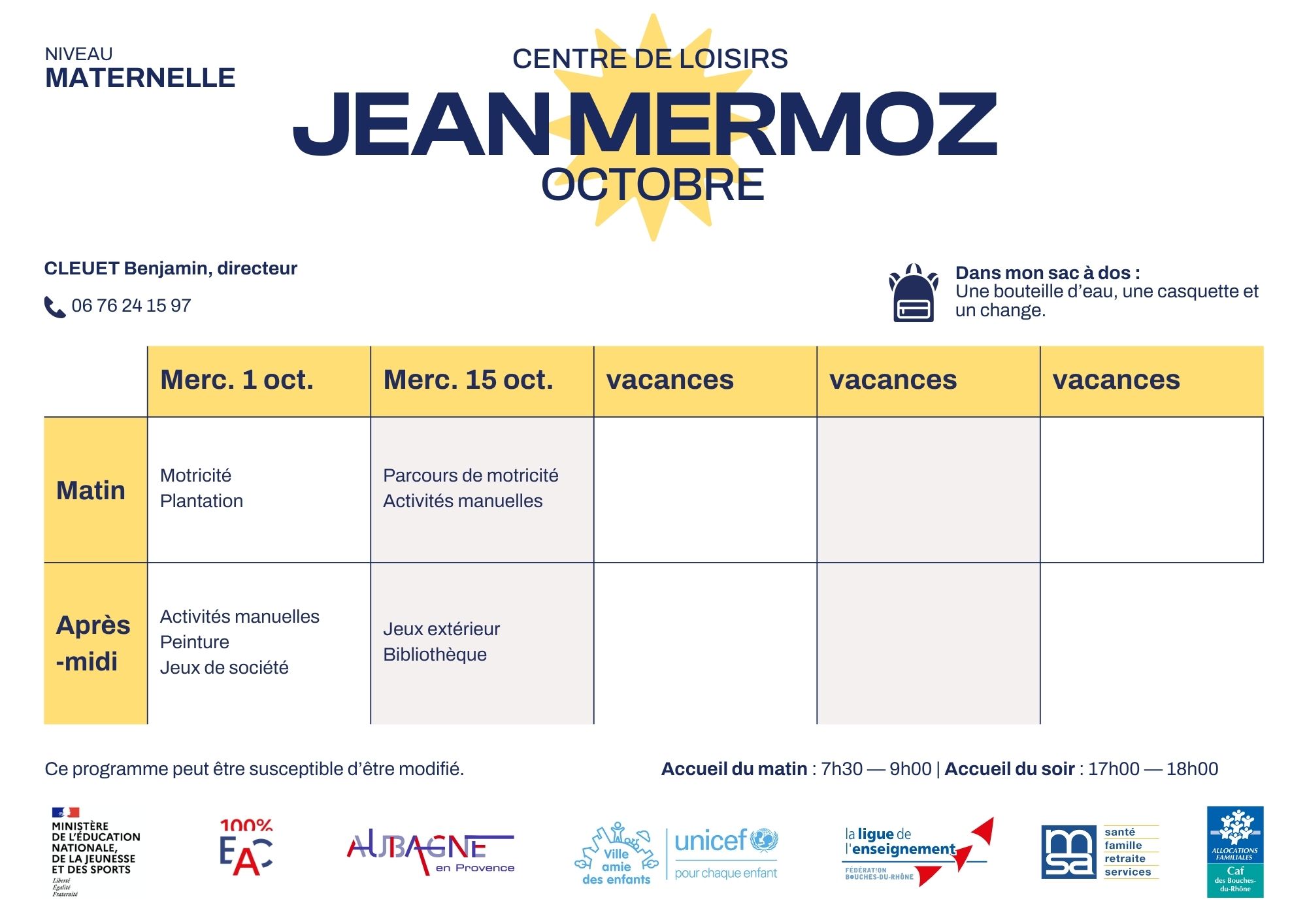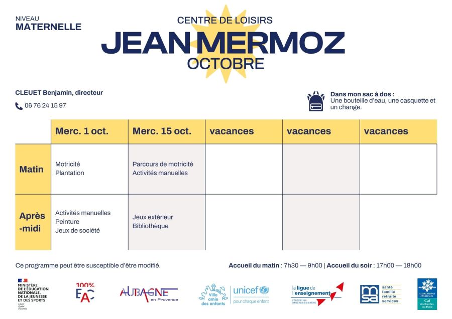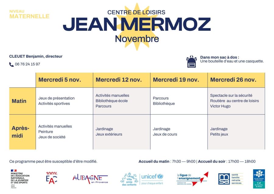 Découvrez le programmes des activités niveau maternelle pour les mercredis.