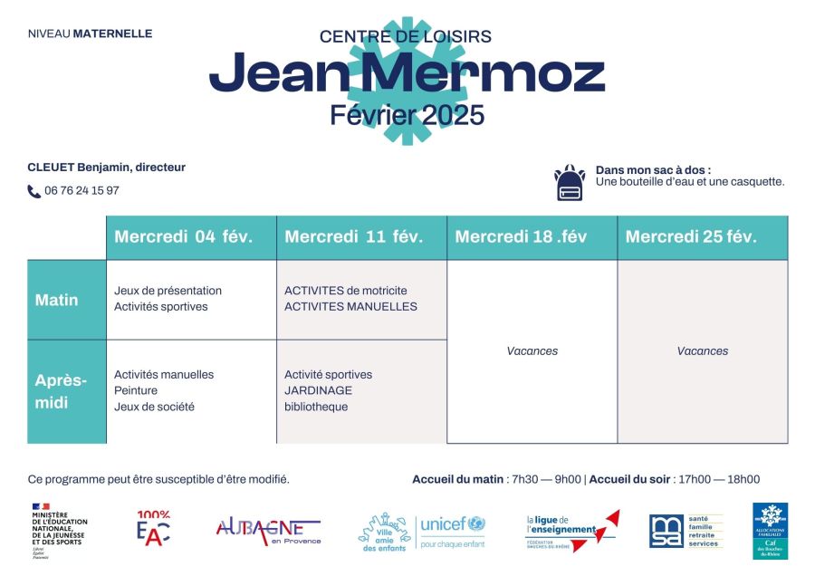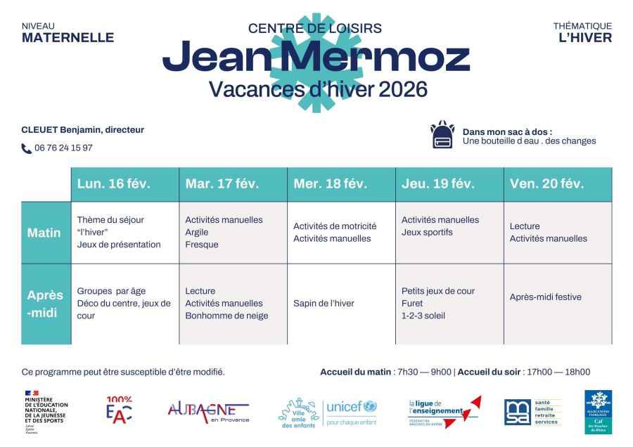 Découvrez le programmes des activités niveau maternelle pour les 2 semaines des vacances scolaires d'hiver.
