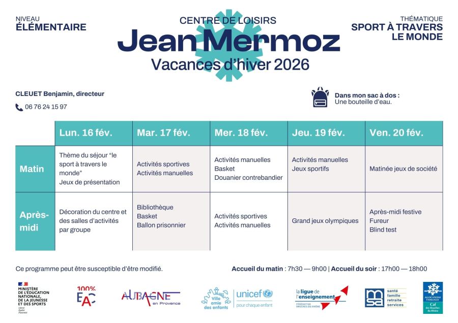 Découvrez le programmes des activités niveau élémentaire pour les 2 semaines des vacances scolaires d'hiver.