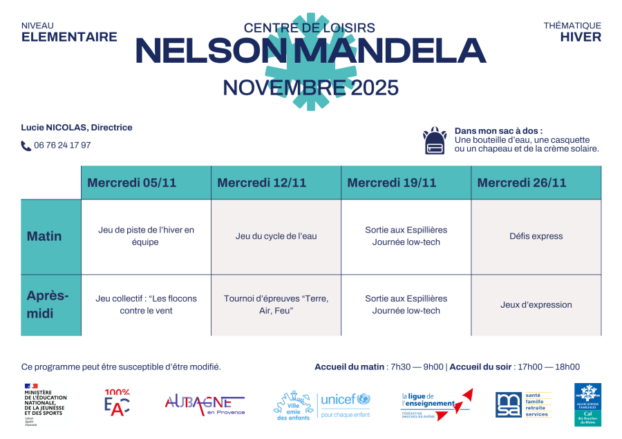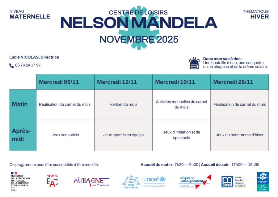 Situé au cœur du quartier du Charrel, le centre de loisirs Nelson Mandela accueille des enfants âgés de 3 à 12 ans les mercredis & pendant les vacances scolaires.