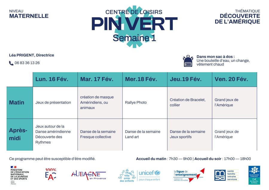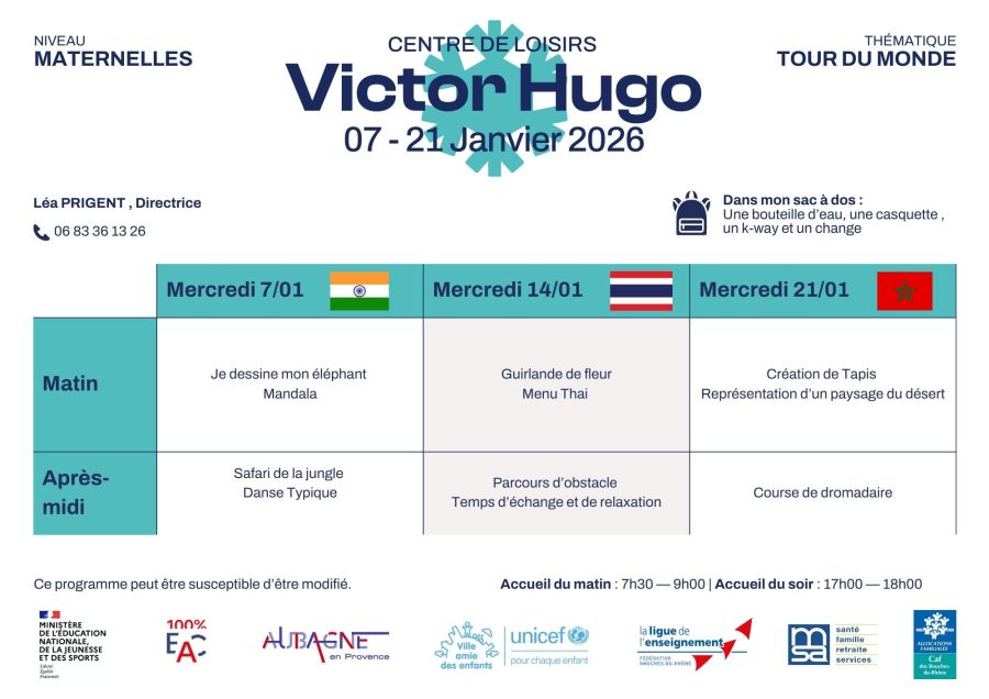 Découvrez le programmes des activités niveau maternelle pour les 2 semaines des vacances scolaires d'hiver.