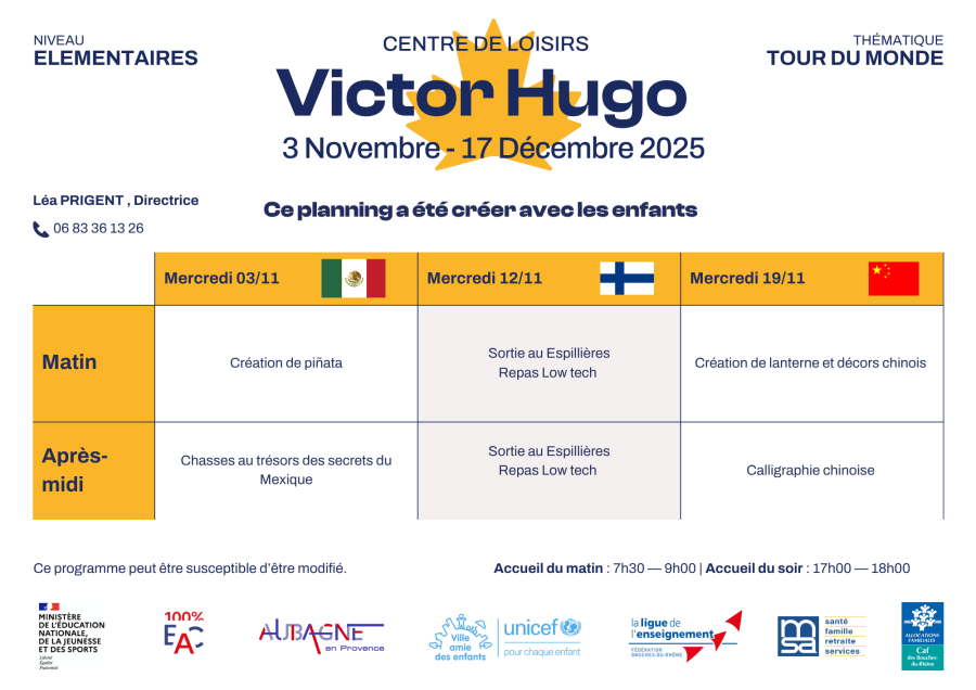 Découvrez le programmes des activités niveau élémentaire pour les mercredis.
