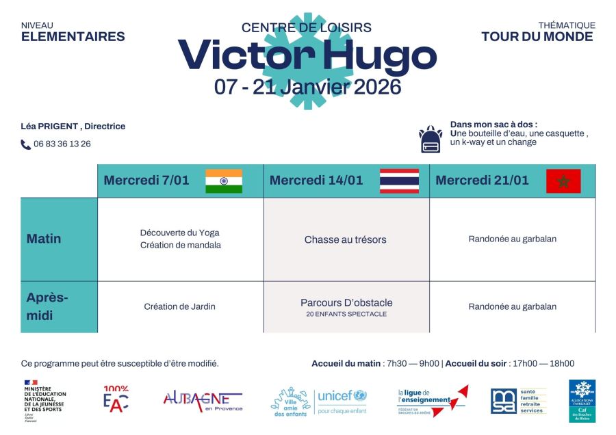 L'ensemble des activités auront lieu au Pin Vert (centre Victor Hugo fermé pour cause de travaux)