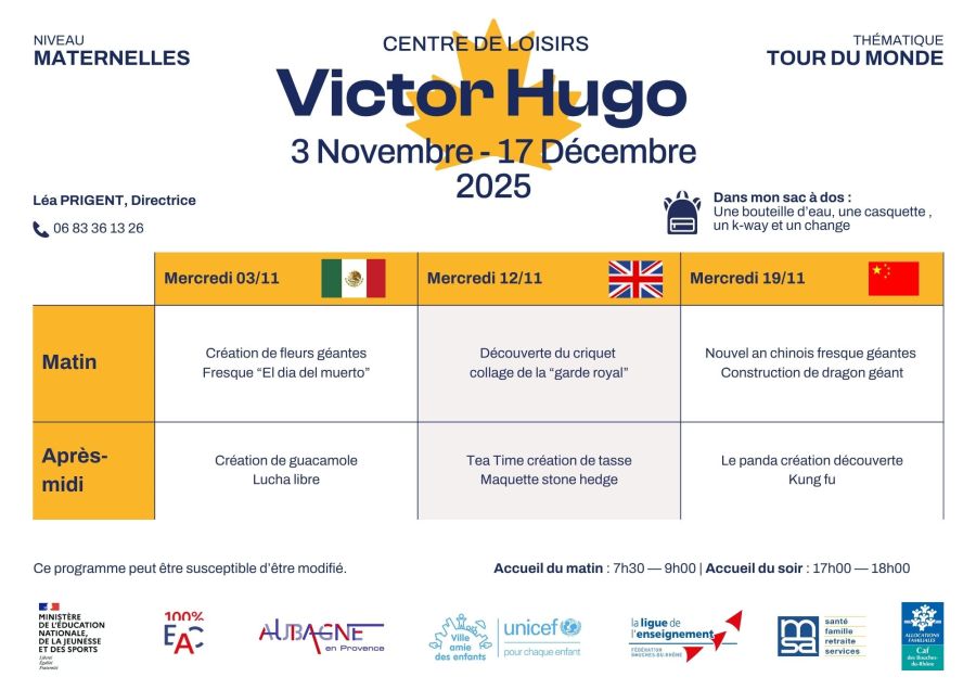 Découvrez le programmes des activités niveau maternelle pour les mercredis.