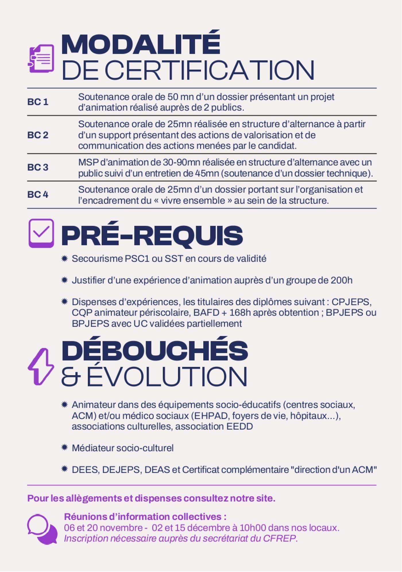 Les réunions d'informations sont prévues les 6 et 20 novembre 2025, et les 2 et 15 décembre 2025, toutes à 10h à l'adresse suivante :